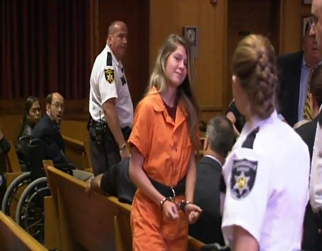 for second degree murder; the judge made a compromise between the prosecution's recommendation and the Neeses' wish) with a stoic expression on her face, even if her