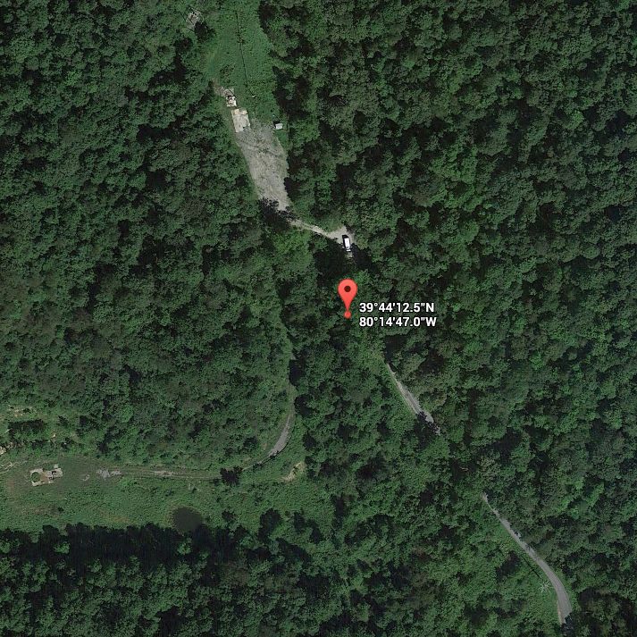 The site (with the memorial clearly visible) is also viewable on Google Street View (photographed in October 2013). Simply go to Google Maps and type "Morris Run Road, Spraggs, Pennsylvania". Or, you can also type in the exact coordinates, which are 39.736806, -80.246387. (It seems that googling these coordinates directly takes you slightly off; instead, input the coordinates while already on Google Maps.) Bing Maps also has aerial images of the site.